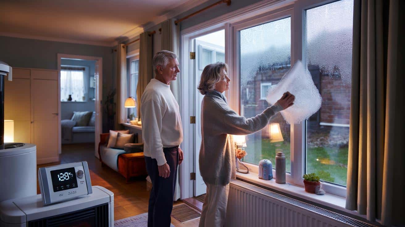 Watch the humidity meter: if readings sit above 60%, you’re effectively heating damp air and cold walls, not just your living space.